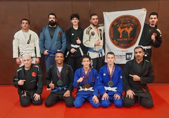 Les membres de la Schmitz team aux Internationaux d’Allemagne de jiu jitsu Brésilien coaché par Abdel Zerara ( voir résultats dans la partie “résultat compétition ” du site).