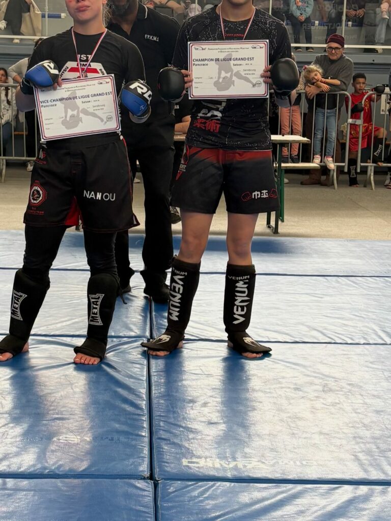 Morgan et Denièce au championnat du Grand Est Boxe Thaï ou elles ont fait 1ères toutes les deux dans leur catégories.